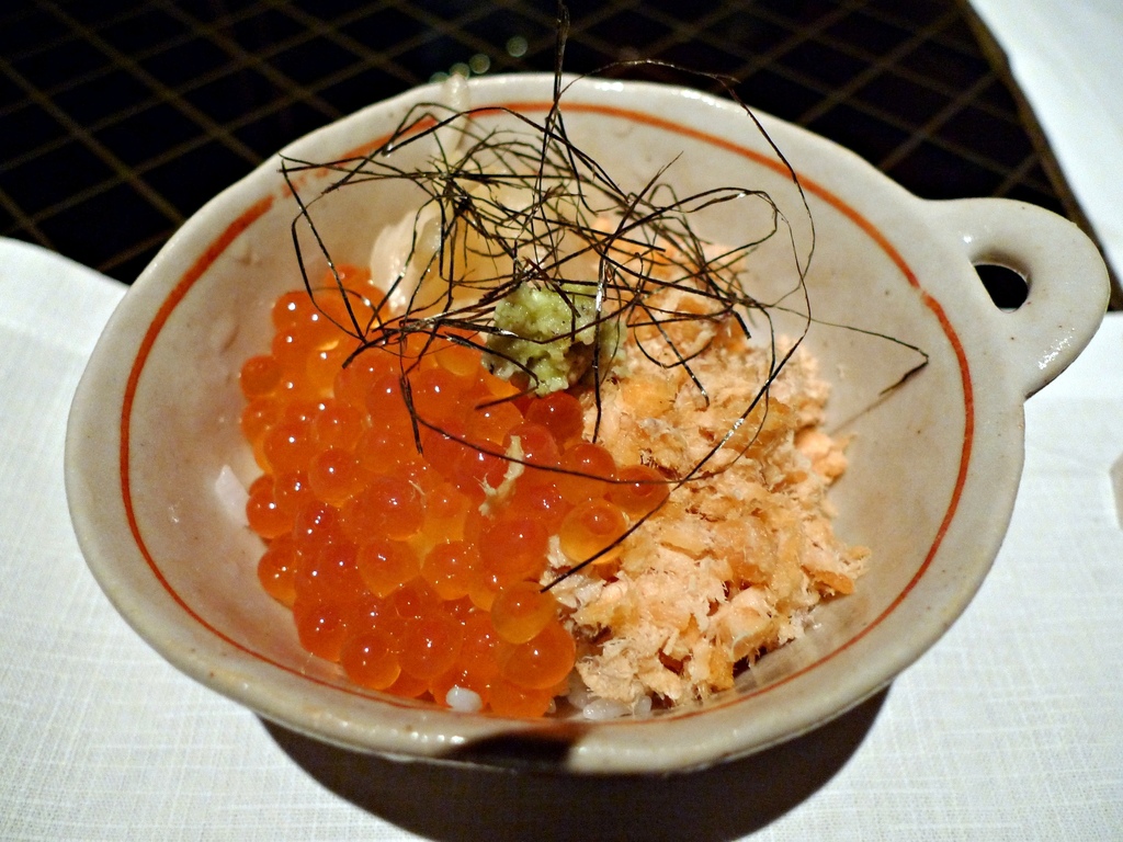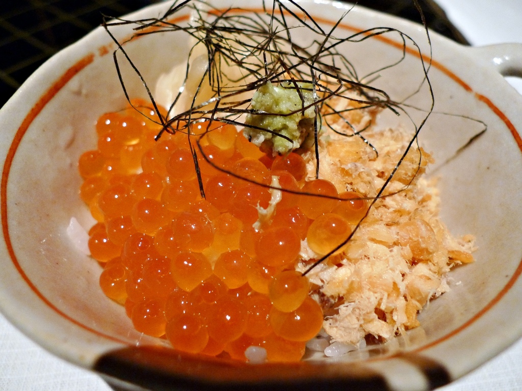 而且上面那一堆鮭魚卵真的是在考驗客人的耐心和毅力啊,很難用筷子夾起來耶!噗哈哈!