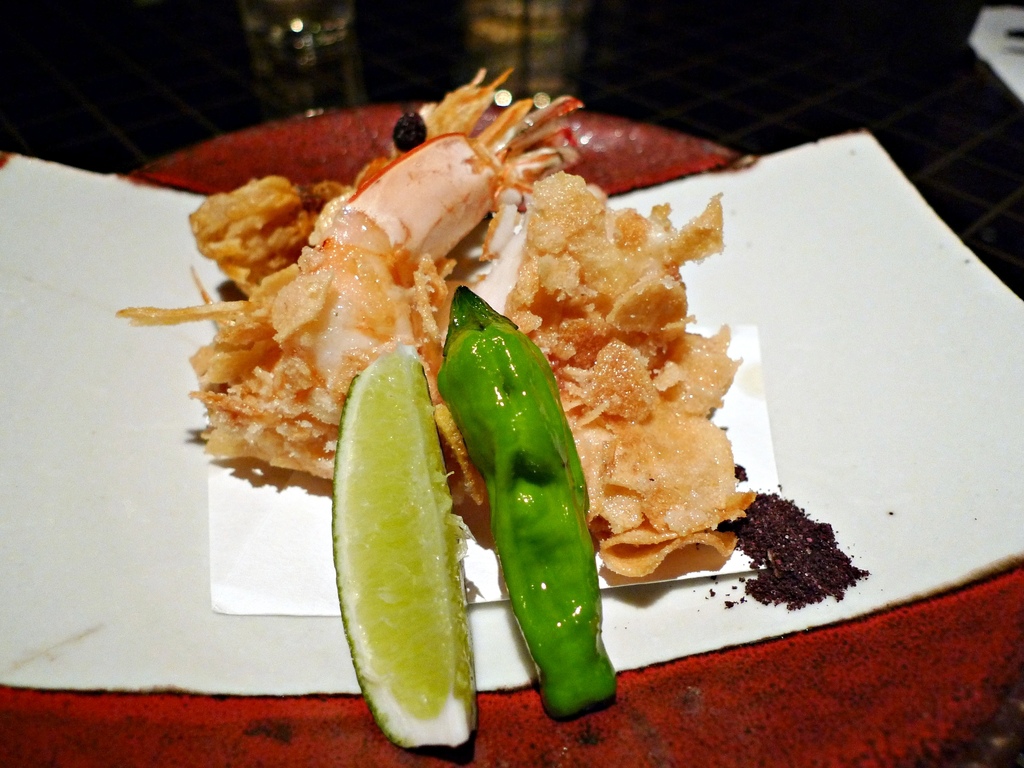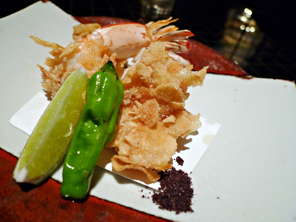 炸蝦很鮮美,可以擠上檸檬汁直接吃、也可以沾旁邊那個紫蘇鹽再吃,