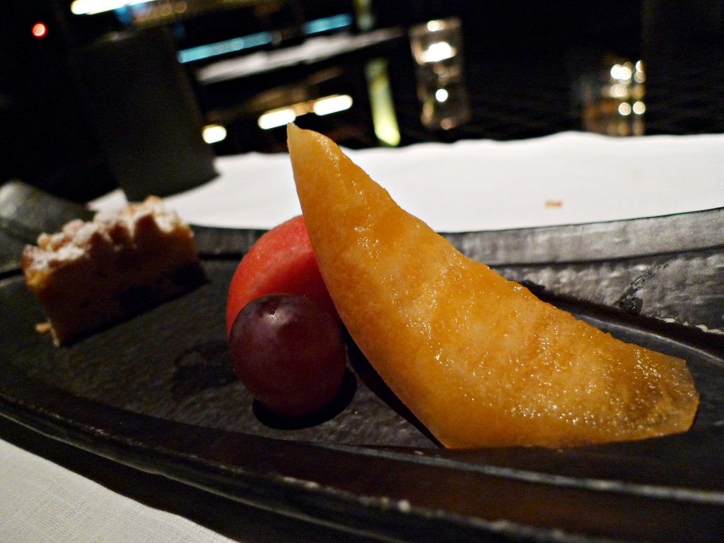 這是我的蛋糕和水果,水果很普通、蛋糕倒很特別,是很硬的那種耶!不過滿好吃的,我即使肚子很撐還是吃完了!