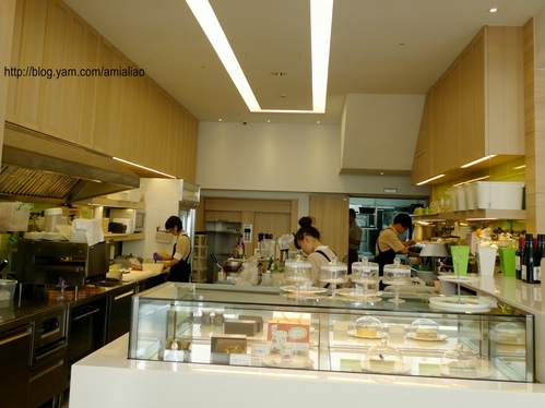這邊可以看到開放式的廚房,外面是甜點區、更裡面一間是廚房,大家都在忙耶。