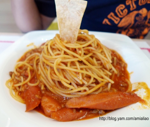 毛爸一向比較喜歡紅醬,他點的是波隆尼德式香腸肉醬義大利麵。
