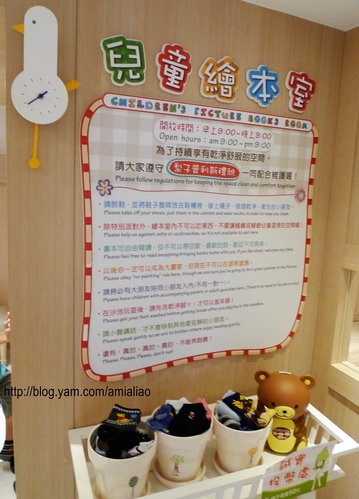 繪本室是要脫鞋子的,不過有規定要穿襪子唷。