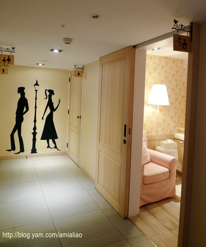 轉進這條小小走廊一眼會注意到牆上的壁貼,一男一女的影子,好有質感!好好看唷,整個空間都優雅了起來。