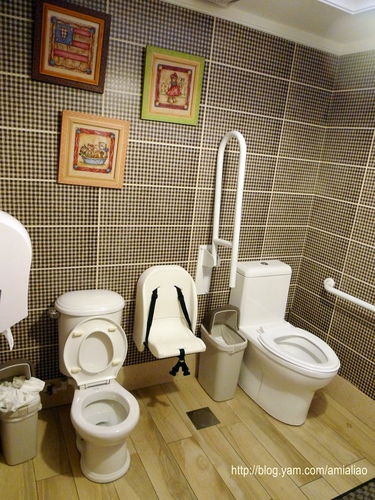 馬桶也有大人和小孩的,中間還有一個嬰兒座椅,整個就是很貼心、很替媽媽們著想唷。